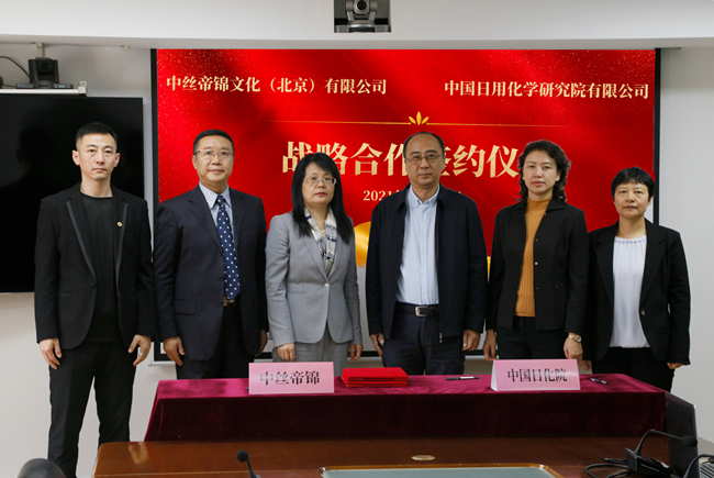 2021年10月14日,中國日用化學(xué)研究院有限公司(以下簡(jiǎn)稱“中國日化院”)與中絲帝錦文化(北京)有限公司(以下簡(jiǎn)稱“中絲帝錦”)在中絲集團(tuán)舉行戰(zhàn)略合作簽約儀式,由中國日化院耿濤總經(jīng)理與中絲帝錦王海蓉執(zhí)行董事簽署協(xié)議。