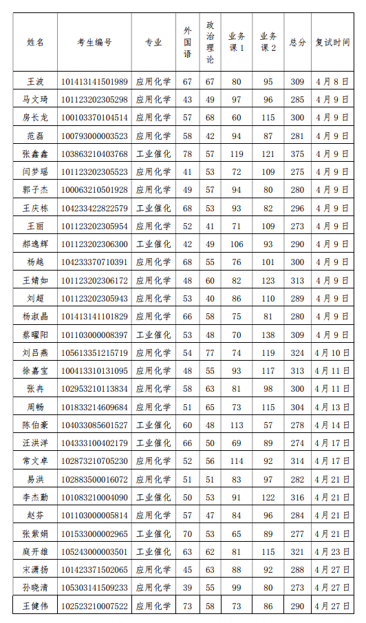 TALENT中國日用化學(xué)工業(yè)研究院2023年研究生復(fù)試學(xué)生名單