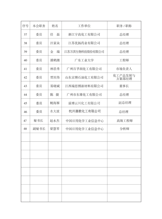 中國洗協(xié)表委會掛靠單位為中國日用化學(xué)研究院,具體工作由中國日化院信息中心開展實(shí)施。目前,第九屆表委會主任委員由中國洗協(xié)副理事長、中國日用化學(xué)研究院院長耿濤擔(dān)任,秘書長由中國日用化學(xué)工業(yè)信息中心高級工程師趙永杰擔(dān)任,副秘書長由中國日用化學(xué)工業(yè)信息中心分析師梁慧琴擔(dān)任。