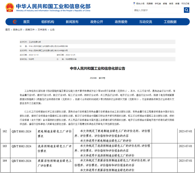 三項標準將于2025年7月1日起實施。日化領域綠色工廠標準的發(fā)布健全了表面活性劑和洗滌用品標準體系,為日化領域綠色產(chǎn)業(yè)升級提供了技術支撐。
