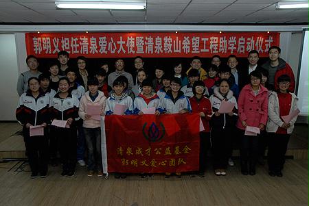 3月8日下午,“國資委直屬機關(guān)郭明義愛心團(tuán)隊”的青年志愿者踏上了赴遼寧鞍山的助學(xué)公益之旅。在陪同清泉基金工作人員實地走訪受資助學(xué)生家庭、參觀 鞍鋼集團(tuán)雷鋒紀(jì)念館后,“國資委直屬機關(guān)郭明義愛心團(tuán)隊”青年志愿者與受資助學(xué)生以及所在學(xué)校輔導(dǎo)員、部分學(xué)生家長共同見證了郭明義擔(dān)任清泉愛心大使暨清 泉鞍山希望工程助學(xué)啟動儀式,并與“當(dāng)代雷鋒”郭明義同志進(jìn)行了面對面的互動交流。