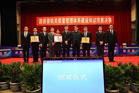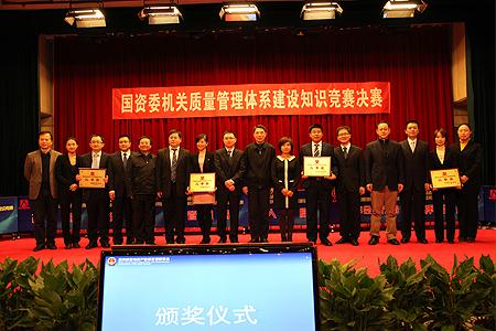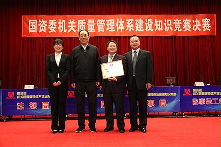 直屬機關(guān)黨委常務(wù)副書記曾堅介紹了委機關(guān)質(zhì)量管理體系建設(shè)知識競賽活動情況并主持頒獎儀式。姜志剛、郭建新,以及委機關(guān)管理提升活動領(lǐng)導小組辦公室、辦公廳、法規(guī)局、人事局、管理局主要負責同志為獲獎代表隊頒獎。