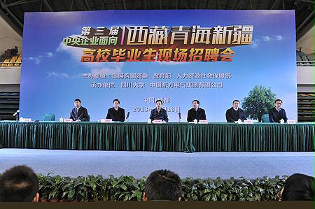 為貫徹黨的十八大和十八屆三中全會精神,深入落實(shí)中央關(guān)于援藏、援青、援疆工作的總體部署,積極做好促進(jìn)西藏青海新疆高校畢業(yè)生,特別是少數(shù)民族高校 畢業(yè)生就業(yè)工作,12月18日,國資委、教育部、人力資源社會保障部在四川大學(xué)聯(lián)合舉辦“第三屆中央企業(yè)面向西藏青海新疆高校畢業(yè)生現(xiàn)場招聘會”。國資委 副主任徐福順、人力資源社會保障部副部長信長星出席招聘會并講話。74家中央企業(yè)代表和20多所高校代表參加了本次招聘會。
