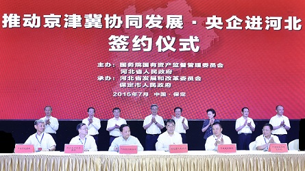 7月3日,國(guó)務(wù)院國(guó)資委主任、黨委書(shū)記張毅出席“推動(dòng)京津冀協(xié)同發(fā)展?央企進(jìn)河北”活動(dòng)簽約儀式并講話。河北省委書(shū)記、省人大常委會(huì)主任周本順在簽約儀式上致辭,河北省委副書(shū)記、省長(zhǎng)張慶偉介紹了河北在京津冀協(xié)同發(fā)展中的定位、主要任務(wù)及河北省“十三五”經(jīng)濟(jì)社會(huì)發(fā)展規(guī)劃和戰(zhàn)略投資重點(diǎn)領(lǐng)域等有關(guān)情況。國(guó)務(wù)院國(guó)資委副主任、黨委委員黃丹華,黨委委員、秘書(shū)長(zhǎng)閻曉峰,河北省領(lǐng)導(dǎo)趙勇、付志方、楊崇勇、宋恩華、張杰輝、沈小平、許寧、姜德果、秦博勇等出席簽約儀式。