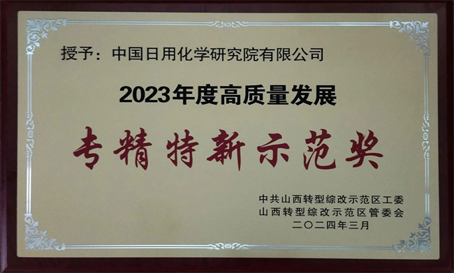 3月11日,中國(guó)日化院被中共山西轉(zhuǎn)型綜改示范區(qū)工委和山西轉(zhuǎn)型綜改示范區(qū)管委會(huì)聯(lián)合授予2023年度高質(zhì)量發(fā)展專(zhuān)精特新示范獎(jiǎng)。這是繼獲批國(guó)家級(jí)專(zhuān)精特新“小巨人”企業(yè),順利通過(guò)國(guó)家級(jí)高新技術(shù)企業(yè)復(fù)審后,日化院獲得的又一科技創(chuàng)新類(lèi)榮譽(yù)。