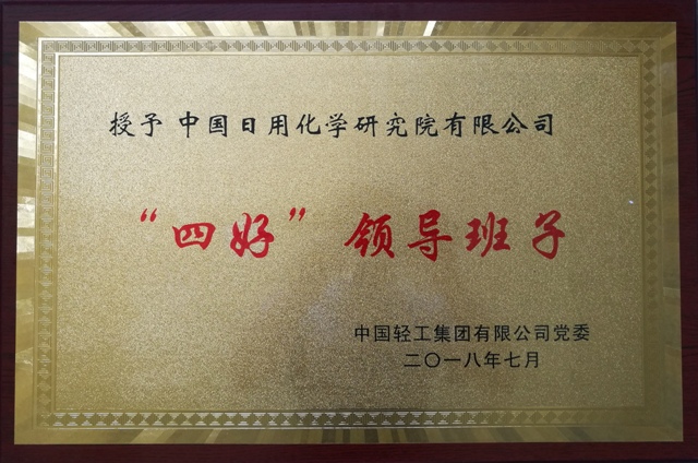 2018年7月17日,中國日化院被中國輕工集團有限公司黨委授予 “四好領(lǐng)導(dǎo)班子”榮譽稱號。這是十八大以來,日化院繼2015年被評為2011—2014年“四好領(lǐng)導(dǎo)班子”之后,連續(xù)第二次獲此殊榮。
