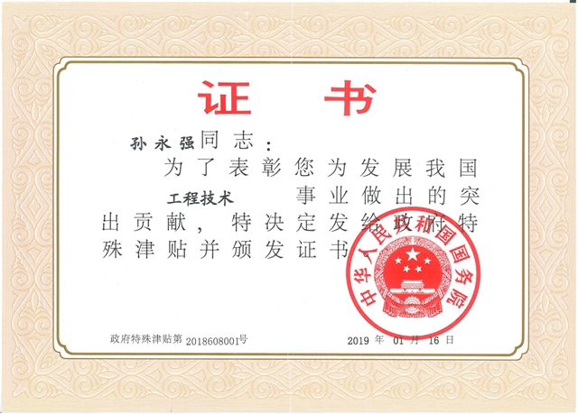 經(jīng)國(guó)務(wù)院批準(zhǔn),中國(guó)日化院孫永強(qiáng)副院長(zhǎng)享受2018年政府特殊津貼。