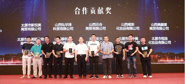 王萬(wàn)緒院長(zhǎng)還出席了當(dāng)晚舉行的山西美妝藝術(shù)節(jié)暨品觀零售峰會(huì)頒獎(jiǎng)晚宴,為榮獲“中國(guó)化妝品渠道脊梁”和“年度合作貢獻(xiàn)獎(jiǎng)”的企業(yè)代表頒獎(jiǎng)。