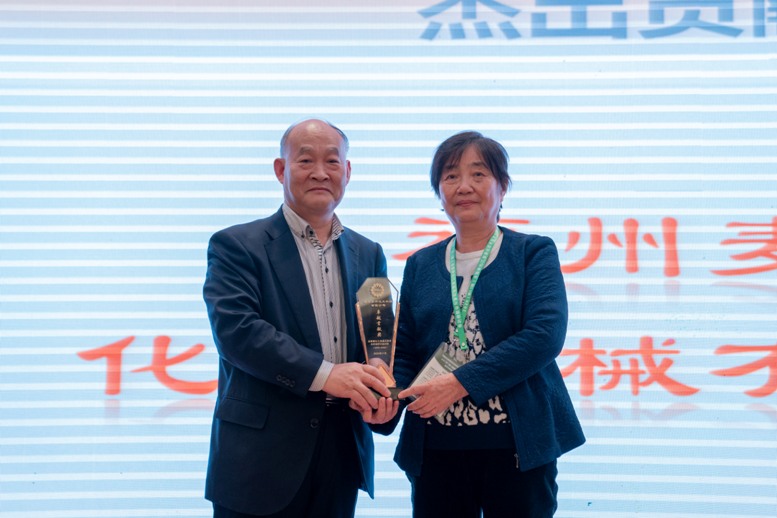 中國日用化學(xué)工業(yè)研究院首席專家王萬緒為獲獎(jiǎng)單位頒獎(jiǎng)