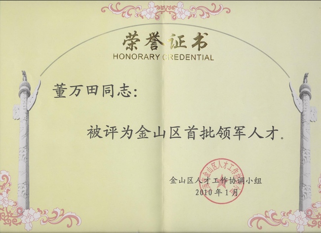 兼上海發(fā)凱化工有限公司總經(jīng)理榮獲金山區(qū)首批領(lǐng)軍人才稱號,這是董萬田同志繼