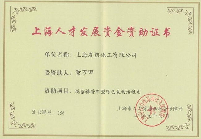 烷基糖苷新型綠色表面活性劑”項目既獲得上海市火炬計劃項目(項目編號: