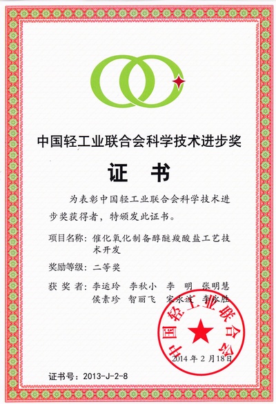 2014年3月28日,中國輕工業(yè)聯(lián)合會三屆四次理事會暨全國輕工行業(yè)工作座談會在濟南召開并在會議期間舉行了2013年度中國輕工聯(lián)合會科學技術(shù)頒獎活動。