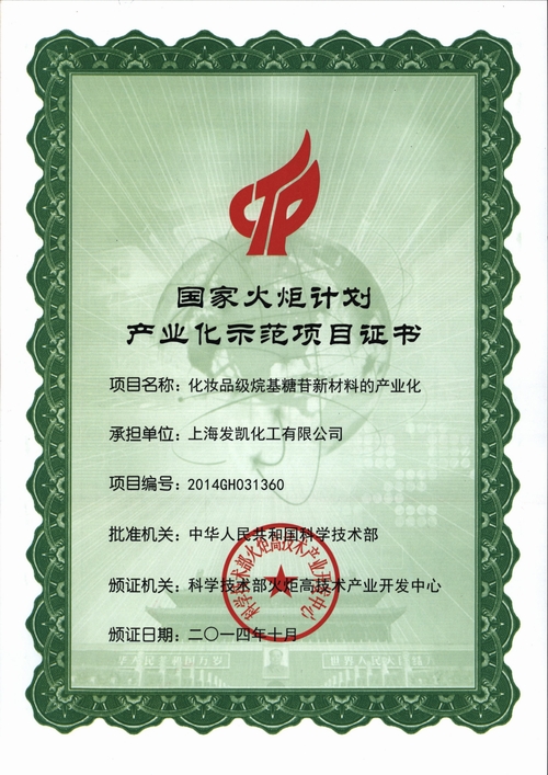 近日,上海發(fā)凱化工有限公司申報的“化妝品級烷基糖苷新材料的產(chǎn)業(yè)化”項目獲得國家科學(xué)技術(shù)部“國家火炬計劃產(chǎn)業(yè)化示范項目”立項批準(zhǔn)。