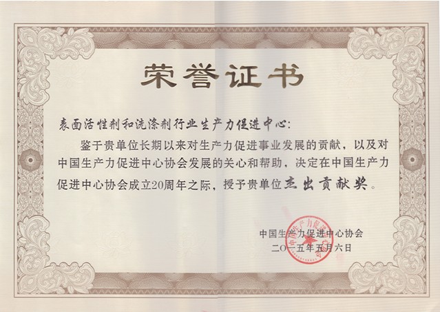 中國日化院生產(chǎn)力促進中心榮獲中國生產(chǎn)力促進中心協(xié)會“杰出貢獻獎”
