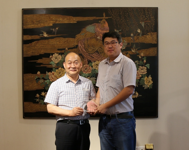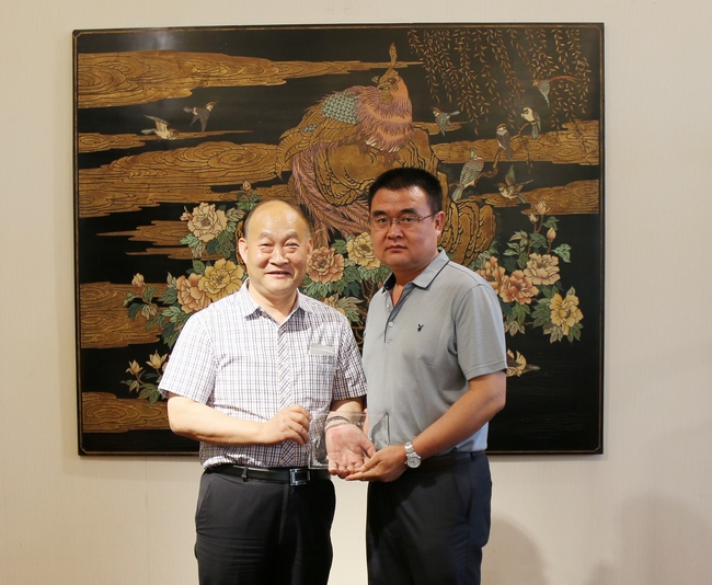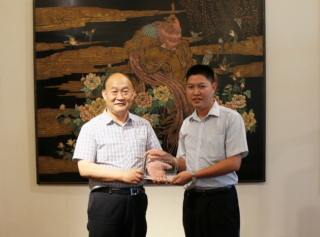 期刊總編輯王萬緒向協(xié)辦單位代表佳化化學(xué)股份有限公司崔洪彬經(jīng)理頒發(fā)期刊協(xié)辦紀(jì)念銘牌