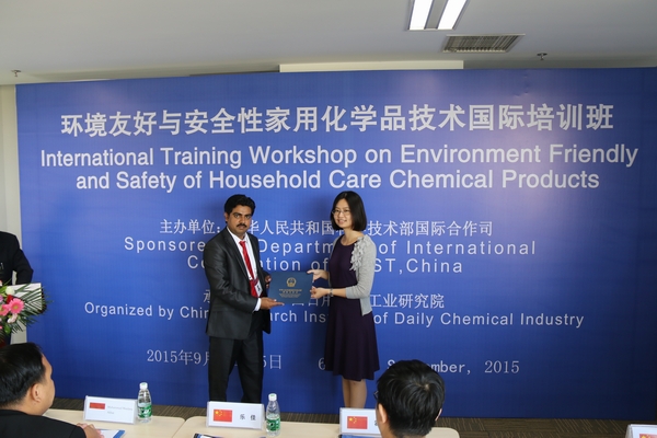 由中華人民共和國科學(xué)技術(shù)部國際合作司主辦、中國日用化學(xué)工業(yè)研究院承辦的“環(huán)境友好與安全性家用化學(xué)品技術(shù)國際培訓(xùn)班”圓滿結(jié)業(yè)。本次培訓(xùn)是2015年度中國政府面向廣大發(fā)展中國家組織實(shí)施的科技援外項(xiàng)目之一,是截至目前中國面向發(fā)展中國家舉辦的第一個日化行業(yè)的技術(shù)援外國際培訓(xùn)項(xiàng)目,也是中國日用化學(xué)工業(yè)研究院舉辦的第一次涉外技術(shù)培訓(xùn)活動。