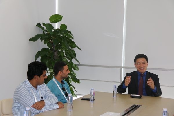 在伽藍(lán)集團(tuán)參觀期間與劉玉亮執(zhí)行總裁進(jìn)行交流