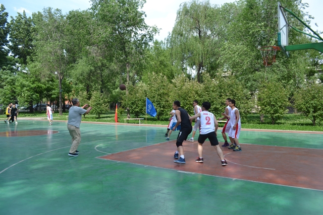 5月19日下午,便隨著夏天特有的火熱悸動(dòng)和難得的拂面微風(fēng),各參賽隊(duì)匯聚在籃球場上。中國日化院黨委副書記耿濤代表黨委表達(dá)了對職工文化生活的關(guān)心和對職工籃球比賽的支持,他特別指出希望全體運(yùn)動(dòng)員秉承著和諧、團(tuán)結(jié)、健康的理念賽出自己的風(fēng)格和水平。隨著工會(huì)副主席賀保林宣布比賽開始,各隊(duì)的“戰(zhàn)役”同時(shí)打響。相比于午后的驕陽,更加熾烈的是運(yùn)動(dòng)員們得分的渴求和對于勝利的向往。比賽一開始就緊張而激烈,發(fā)球、傳球、運(yùn)球、搶斷、上籃、摘板、投球,場上隊(duì)員的運(yùn)動(dòng)速度隨著跑秒的飛逝而提升?;@球與地面和籃板的撞擊聲,腳步與地面的摩擦聲和各部門職工的助威聲匯集成了一支運(yùn)動(dòng)狂響曲。