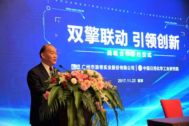 中國日用化學(xué)工業(yè)研究院與廣州市浪奇實(shí)業(yè)股份有限公司于20171122日在江蘇省南京市舉行簽約儀式,開啟雙方的全面戰(zhàn)略合作進(jìn)程。中國日化院王萬緒院長和廣州浪奇陳建斌總經(jīng)理出席儀式并代表合作雙方簽字。