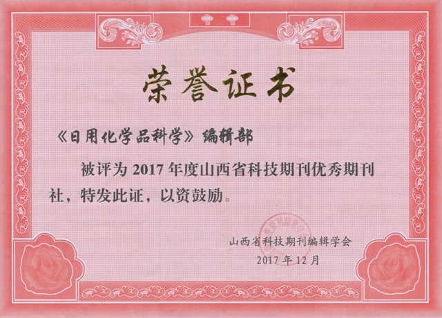 本屆論壇中還進行了頒獎儀式,日化院主辦的《日用化學品科學》《日用化學工業(yè)》雙雙被山西省新聞出版廣電局推選為“山西省十強報刊”,《日用化學品科學》編輯部被山西省科技期刊編輯學會評為“2017年度山西省科技期刊優(yōu)秀期刊社”,李向陽等5人被評定為“2017年度山西省科技期刊優(yōu)秀編輯工作者”。
