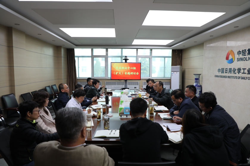 20201026日上午,中國日化院召開黨委理論中心組(擴大)專題研討會,黨委書記、院長耿濤出席了本次會議,黨委班子成員及科研、檢測、裝備和信息部門全體中層干部參加了本次會議。
