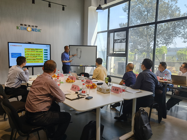 簽約期間,中國(guó)日化院耿濤院長(zhǎng)在科宏達(dá)化學(xué)進(jìn)行學(xué)術(shù)交流