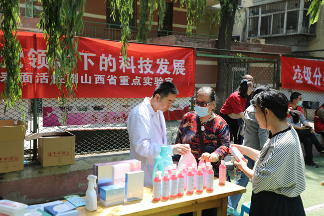 科研人員還進(jìn)入太原市新南二社區(qū),展示產(chǎn)業(yè)化成果,贈(zèng)送百余瓶洗滌產(chǎn)品,將這些從日用化學(xué)品領(lǐng)域中抽提出的國(guó)家級(jí)科研院所最新研發(fā)成果帶回了百姓的盥洗室和廚房,惠及社區(qū)居民。