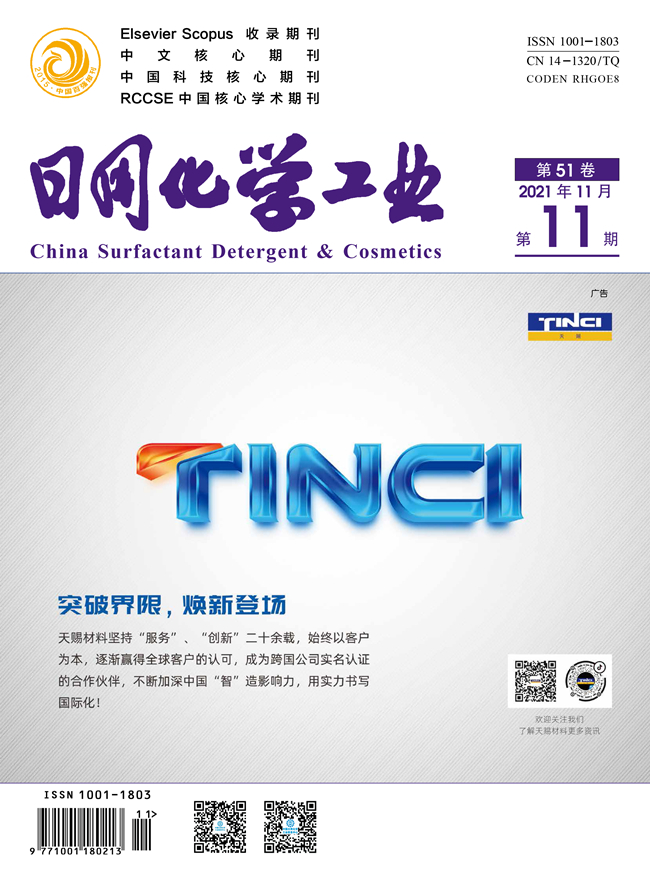 2021年11月,《中國學(xué)術(shù)期刊(光盤版)》電子雜志社有限公司和中國科學(xué)文獻計量評價研究中心聯(lián)合發(fā)布了《中國學(xué)術(shù)期刊影響因子年報(自然科學(xué)與工程技術(shù)·2021版)》,我院《日用化學(xué)工業(yè)》影響力指數(shù)學(xué)科排序和影響因子等期刊評價指標(biāo)再創(chuàng)歷史新高。