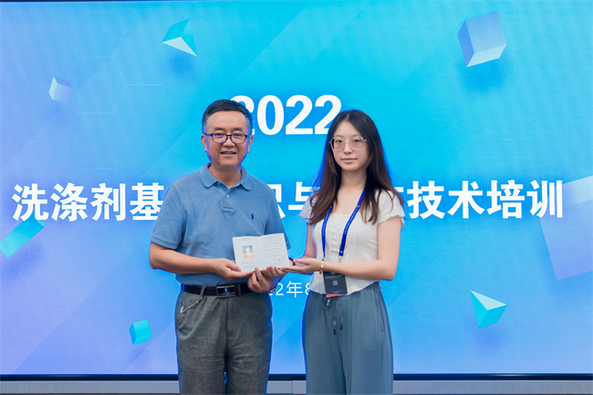 中國日用化學(xué)工業(yè)研究院副院長程寧在培訓(xùn)結(jié)束時(shí)向?qū)W員頒發(fā)證書