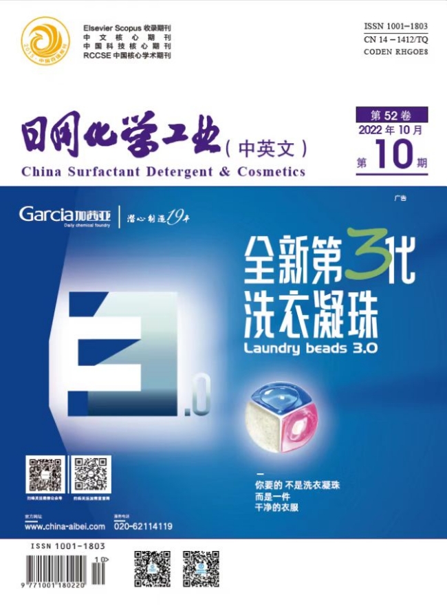 《日用化學(xué)工業(yè)(中英文)》是由保利中輕主管,中國(guó)日化院主辦的學(xué)術(shù)期刊,創(chuàng)刊于1971年,是Elsevier Scopus收錄期刊、中文核心期刊、中國(guó)科技核心期刊及RCCSE中國(guó)核心學(xué)術(shù)期刊。報(bào)道范圍為膠體與界面化學(xué);個(gè)人護(hù)理用品、清潔護(hù)理用品(衣物、家居、工業(yè)及公共設(shè)施);與日化原料相關(guān)的國(guó)內(nèi)外先進(jìn)反應(yīng)器及工程設(shè)計(jì);新型催化劑及催化過程的開發(fā)和研究;綠色化工與清潔能源技術(shù)。