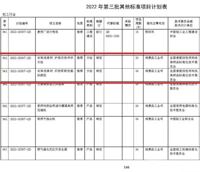 近日,中國日化院組織申報的《衣料洗滌劑 護(hù)色功效評價方法》和《衣料洗滌劑 織物柔軟性能的測定》兩項標(biāo)準(zhǔn)經(jīng)國家工業(yè)和信息化部批準(zhǔn)立項。項目編號分別為2022-2094T-QB和2022-2095T-QB,兩項標(biāo)準(zhǔn)均為新制定的推薦性方法標(biāo)準(zhǔn),制定周期24個月。