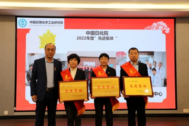 中國日化院黨政班子成員為2022年度先進(jìn)集體和工作者頒獎(jiǎng),鼓勵(lì)全體職工以先進(jìn)為榜樣,共同為日化院美好明天努力奮斗