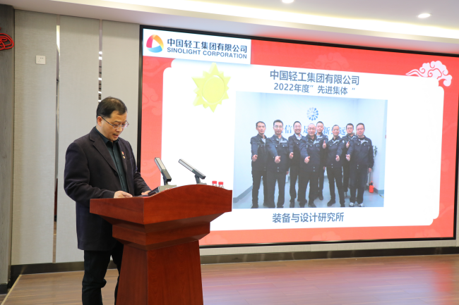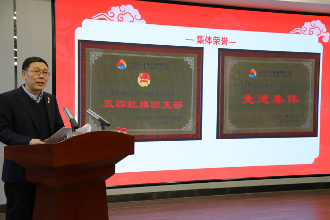 中國日化院黨政班子成員為2022年度先進(jìn)集體和工作者頒獎(jiǎng),鼓勵(lì)全體職工以先進(jìn)為榜樣,共同為日化院美好明天努力奮斗。