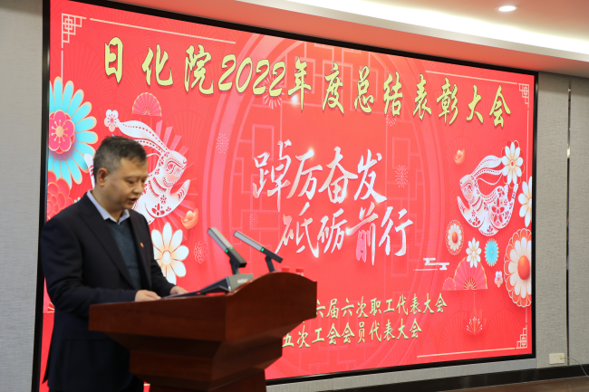 中國日化院黨委書記、院長耿濤做題為《以黨的二十大精神為指引 深化改革 提質(zhì)增效 不斷推動(dòng)中國日化院高質(zhì)量發(fā)展》的工作報(bào)告。耿濤指出,2022年,日化院全面貫徹落實(shí)中央各項(xiàng)精神和集團(tuán)公司各項(xiàng)要求,因勢(shì)而變,順勢(shì)而為,以“固底板、優(yōu)機(jī)制、搶機(jī)遇、拓市場(chǎng)、求突破、防風(fēng)險(xiǎn)”為思路,在全體干部職工的共同努力下,系統(tǒng)有序推進(jìn)各項(xiàng)改革發(fā)展任務(wù)和科技創(chuàng)新工作,順利完成集團(tuán)公司下達(dá)的各項(xiàng)任務(wù)目標(biāo),為2023年度各項(xiàng)工作深入開展和“十四五”規(guī)劃順利實(shí)施奠定了堅(jiān)實(shí)基礎(chǔ)。2022年,中國日化院黨委被保利集團(tuán)和中輕集團(tuán)授予“優(yōu)秀基層黨組織”榮譽(yù)稱號(hào),成功入選國家知識(shí)產(chǎn)權(quán)局2022年度新一批國家知識(shí)產(chǎn)權(quán)優(yōu)勢(shì)企業(yè)、山西省“專精特新”中小企業(yè)、山西省高端研發(fā)機(jī)構(gòu)(培育)、山西省基礎(chǔ)研究計(jì)劃項(xiàng)目經(jīng)費(fèi)“包干制”管理試點(diǎn)單位和太原市新型研發(fā)機(jī)構(gòu)。耿濤強(qiáng)調(diào),日化院2022年獲得的榮譽(yù)和取得的成績是全體干部職工:謀發(fā)展,持續(xù)推進(jìn)創(chuàng)新機(jī)制改革;強(qiáng)科研,不斷迭代技術(shù)創(chuàng)新能力;促轉(zhuǎn)化,全面提振科技賦能實(shí)力;抓效能,深入貫徹精益管理理念;固黨建,強(qiáng)根鑄魂引領(lǐng)國企發(fā)展;筑平臺(tái),穩(wěn)步提升行業(yè)影響力的結(jié)果。耿濤要求,在新的一年里,全院職工要踔厲奮發(fā),砥礪前行,全面貫徹落實(shí)“十四五”發(fā)展規(guī)劃要求,高效推進(jìn)2023年度各項(xiàng)改革發(fā)展任務(wù)落地和重點(diǎn)工作任務(wù)完成,特別是強(qiáng)化黨的引領(lǐng),深入推進(jìn)黨建與業(yè)務(wù)融合,科研與市場(chǎng)融合,改革與發(fā)展融合,著力提升科技創(chuàng)新與科研成果產(chǎn)業(yè)化能力,持續(xù)推動(dòng)日化院高質(zhì)量發(fā)展。