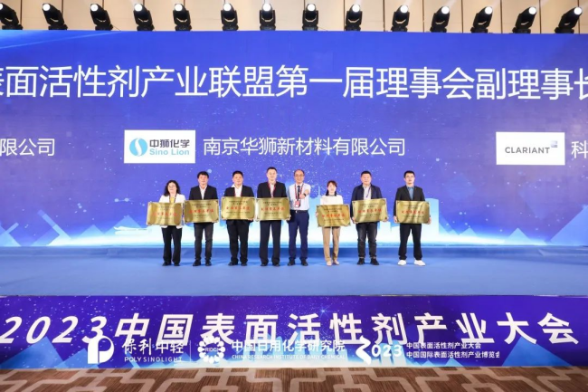 為打破行業(yè)壁壘、跨界整合創(chuàng)新、全面促進我國表面活性劑產(chǎn)業(yè)鏈融合發(fā)展,2023中國表面活性劑產(chǎn)業(yè)大會開幕儀式上,500余位政府代表、企業(yè)高管、專家學者及各地協(xié)會代表齊聚,共同見證中國表面活性劑產(chǎn)業(yè)聯(lián)盟成立儀式。