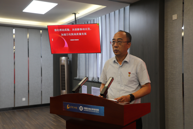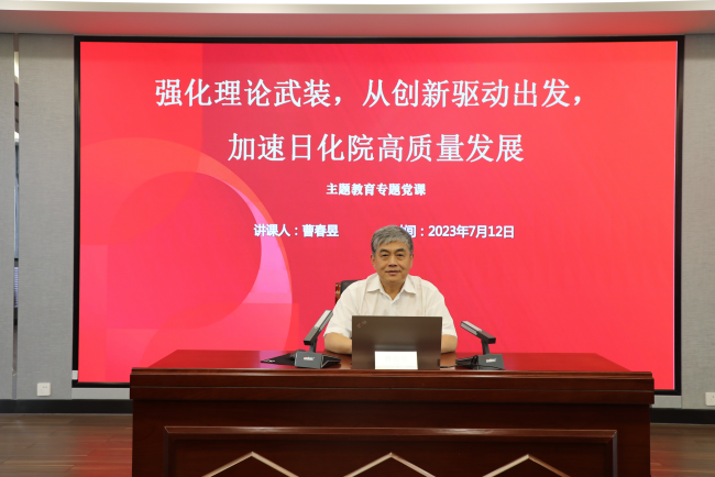 中國(guó)日化院全體班子成員、全體黨員、中層助理及以上干部和統(tǒng)戰(zhàn)人士聆聽(tīng)了曹春昱總工程師的主題教育專(zhuān)題黨課。