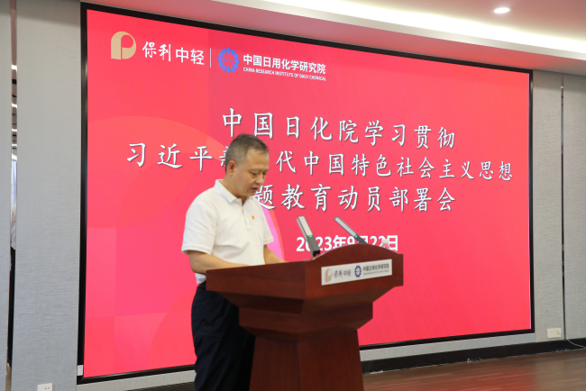9月22日,中國日化院召開學習貫徹習近平新時代中國特色社會主義思想主題教育動員部署會。中國日化院黨委書記、總經理耿濤作動員部署講話,保利中輕黨委辦公室副主任王世明以視頻方式到會指導,會議由中國日化院紀委書記、副總經理張小旦主持。