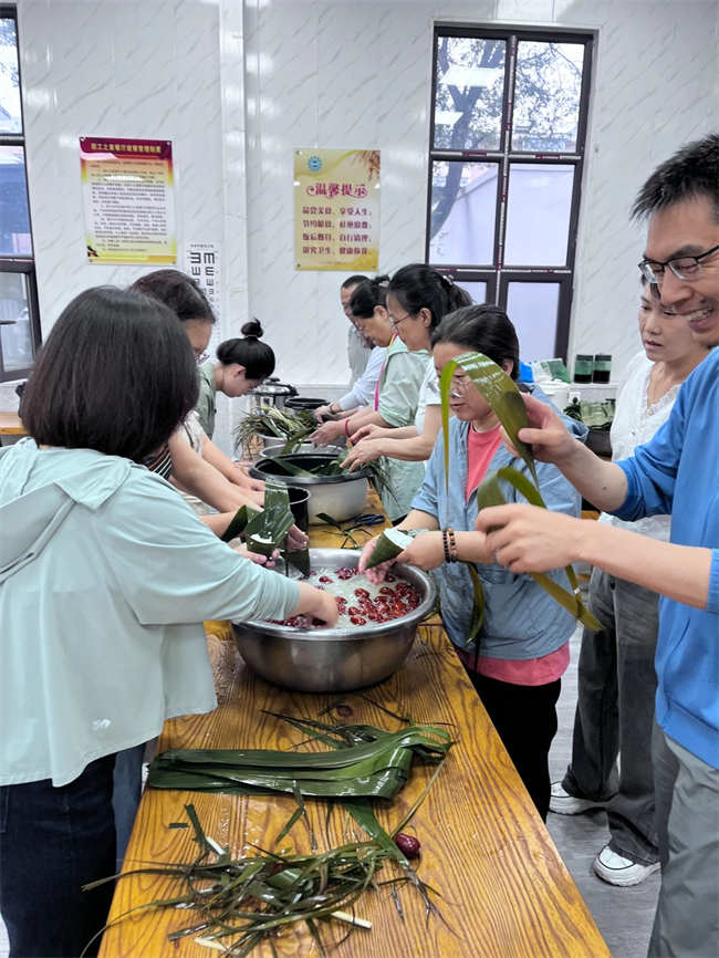 日化院職工踴躍參與,共同體驗包粽子的樂趣。大家交流著包粽子的技巧,暢談著端午節(jié)的“前世今生”,探討著中華傳統(tǒng)文化的內(nèi)涵與價值、弘揚與傳承,活動現(xiàn)場歡聲笑語不斷,氣氛喜慶熱烈。一片片清香的粽葉、一粒粒晶瑩的糯米,轉(zhuǎn)眼變成一個個可人的青粽。