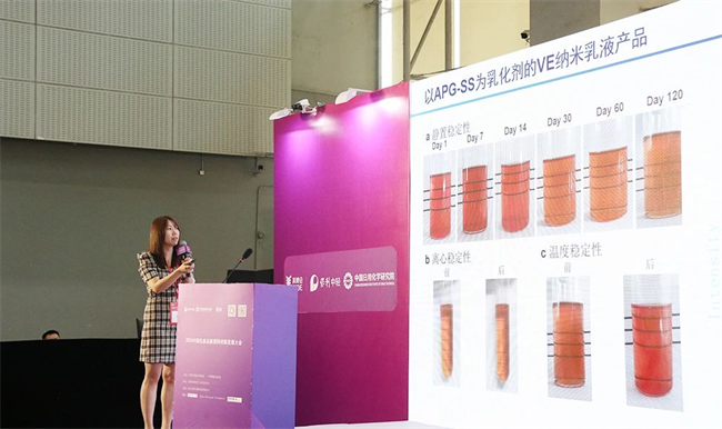 葉琳琳女士做題為“化妝品功效原料現(xiàn)狀和應(yīng)用心得分享”的報告