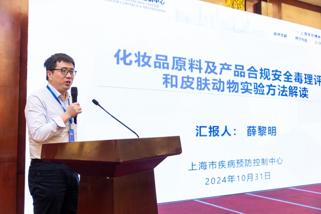 上海市疾病預(yù)防控制中心項(xiàng)目主管薛黎明作《化妝品原料及產(chǎn)品合規(guī)安全毒理評(píng)估和皮膚動(dòng)物實(shí)驗(yàn)方法解讀》報(bào)告