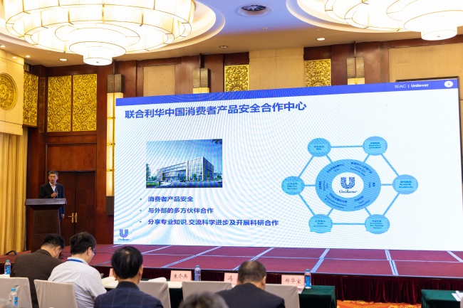 聯(lián)合利華(中國(guó))有限公司法規(guī)事務(wù)總監(jiān)朱介兵作《日用化學(xué)品原料和產(chǎn)品的安全評(píng)估技術(shù)發(fā)展和應(yīng)用——聯(lián)合利華視角》報(bào)告