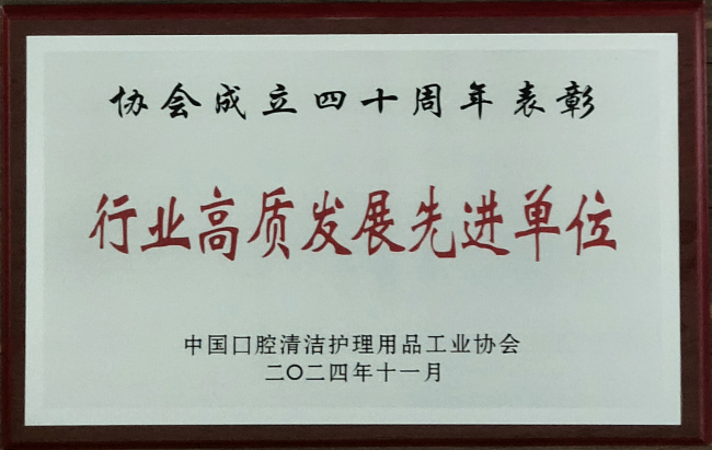 協(xié)會于1984年成立,本次會議恰逢成立40周年,40年來,在黨和政府的領導和行業(yè)全體會員的大力支持下,行業(yè)認真貫徹黨和國家的相關方針政策,積極推動行業(yè)的高質量發(fā)展,為國人的口腔健康事業(yè)做出了重要的歷史性貢獻,目前我國已成為世界上最大的口腔護理用品生產國和消費國。為鼓勵先進,促進協(xié)會工作和行業(yè)更好更快發(fā)展,協(xié)會對成立40年以來協(xié)會工作的先進個人和行業(yè)發(fā)展先進單位予以表彰,中國日化院作為40年來積極支持協(xié)會工作的參與者和行業(yè)提升的重要推動者,以不斷培育和發(fā)展新質生產力、尊重科學、守正創(chuàng)新的優(yōu)異表現(xiàn),被授予“行業(yè)高質發(fā)展先進單位”榮譽稱號。