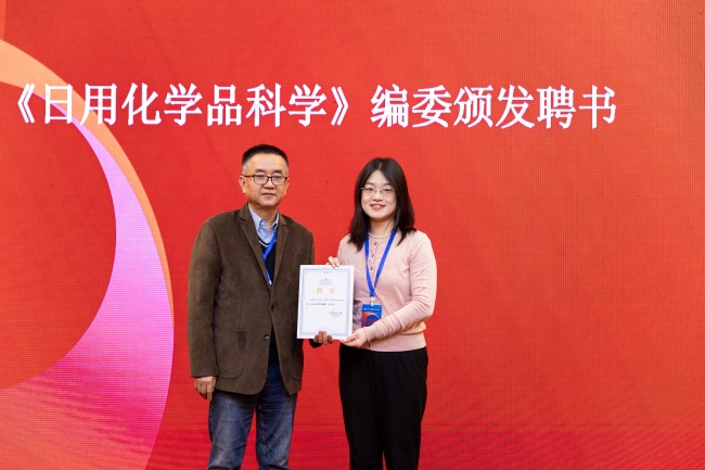 《日用化學(xué)品科學(xué)》主編、中國(guó)日用化學(xué)研究院副院長(zhǎng)程寧為編委頒發(fā)聘書