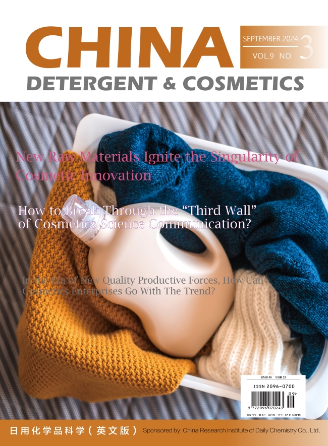 China Detergent &Cosmetics于2015年創(chuàng)刊并于2016年正式發(fā)行,是中國唯一的專業(yè)報道中國日化行業(yè)狀況的英文期刊,其主管單位為中國輕工集團有限公司,主辦單位為中國日用化學(xué)研究院有限公司。作為中國日化領(lǐng)域的第一本全英文期刊,CDC面向海內(nèi)外公開發(fā)行,全面解析全球日化行情,重點展示中國日用化學(xué)工業(yè)領(lǐng)域科研成果,同時介紹全球日化行業(yè)的先進技術(shù)、成果及市場發(fā)展情況。CDC填補了中國日用化學(xué)工業(yè)領(lǐng)域無英文版專業(yè)期刊的空白,承載了中國日化行業(yè)對外宣傳,讓世界了解中國日化的重任,是中外日化行業(yè)進行交流展示的絕佳平臺。