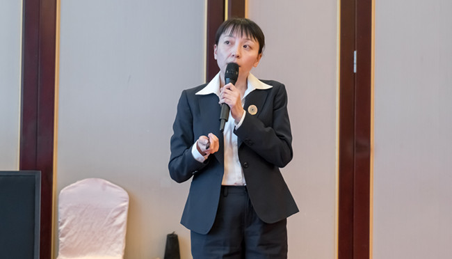 常務(wù)理事單位代表名臣健康用品股份有限公司崔鳳玲經(jīng)理發(fā)言