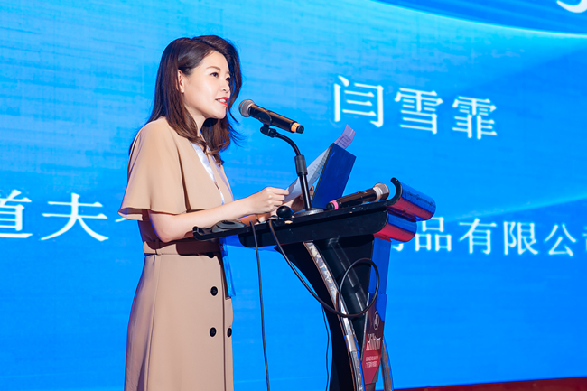 大會(huì)協(xié)辦單位代表廣州阿道夫個(gè)人護(hù)理用品有限公司總裁辦主任閆雪霏在開(kāi)幕式中致歡迎詞