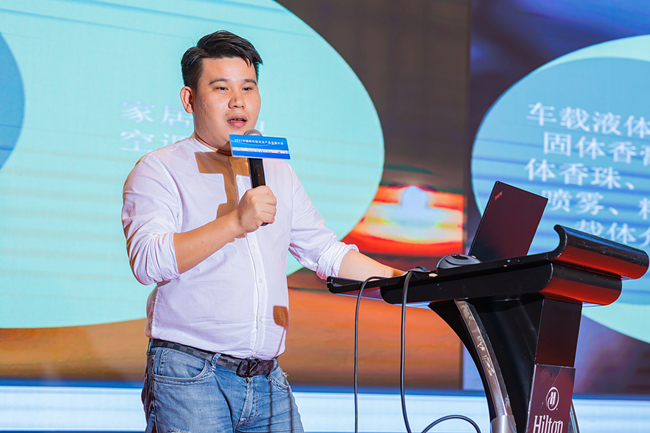 廣東銘康香精香料有限公司余子波常務(wù)副總經(jīng)理作《創(chuàng)新香型在新劑型產(chǎn)品的應(yīng)用》特邀報(bào)告