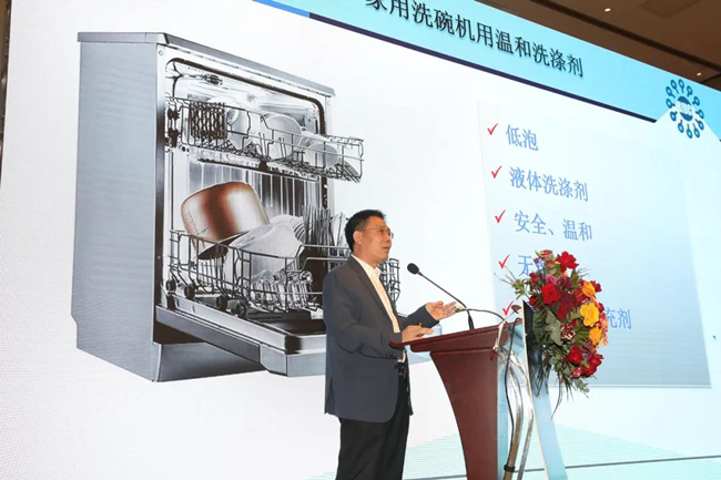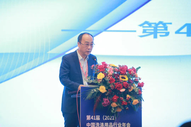 中國日用化學工業(yè)研究院副院長孫永強作題為《洗滌劑的新發(fā)展對表面活性劑的需求》的報告