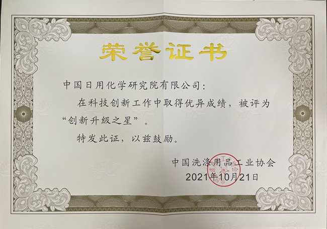 中國日用化學工業(yè)研究院榮獲“創(chuàng)新升級之星”稱號