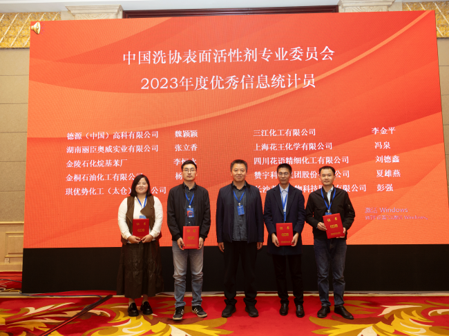 會(huì)議期間,表委會(huì)對(duì)在2023年度信息統(tǒng)計(jì)工作中表現(xiàn)優(yōu)異的統(tǒng)計(jì)員進(jìn)行了表彰和獎(jiǎng)勵(lì)。第九屆中國洗協(xié)表委會(huì)副主任委員王旭宣讀《中國洗協(xié)表面活性劑專業(yè)委員會(huì)關(guān)于對(duì)2023年度優(yōu)秀統(tǒng)計(jì)員進(jìn)行表彰的決定》。